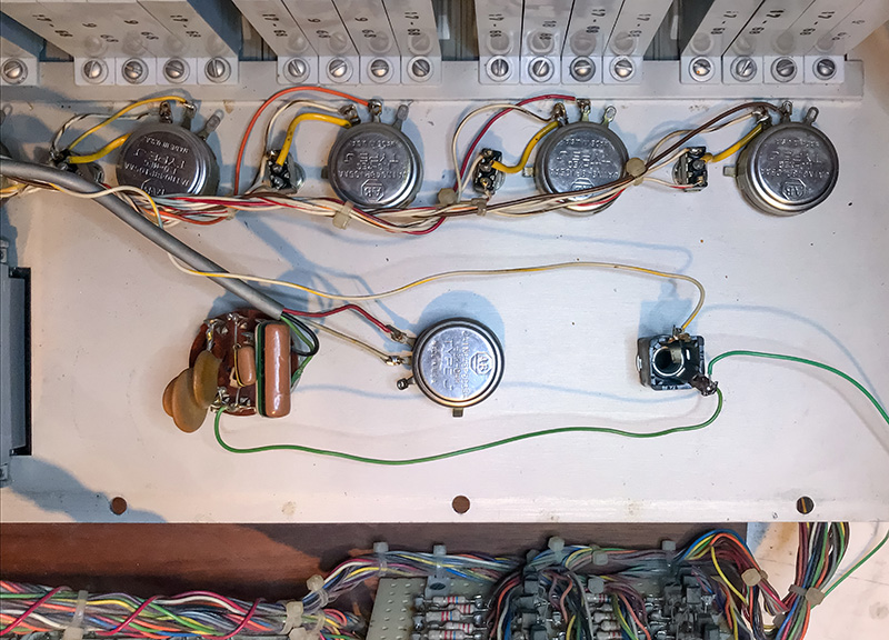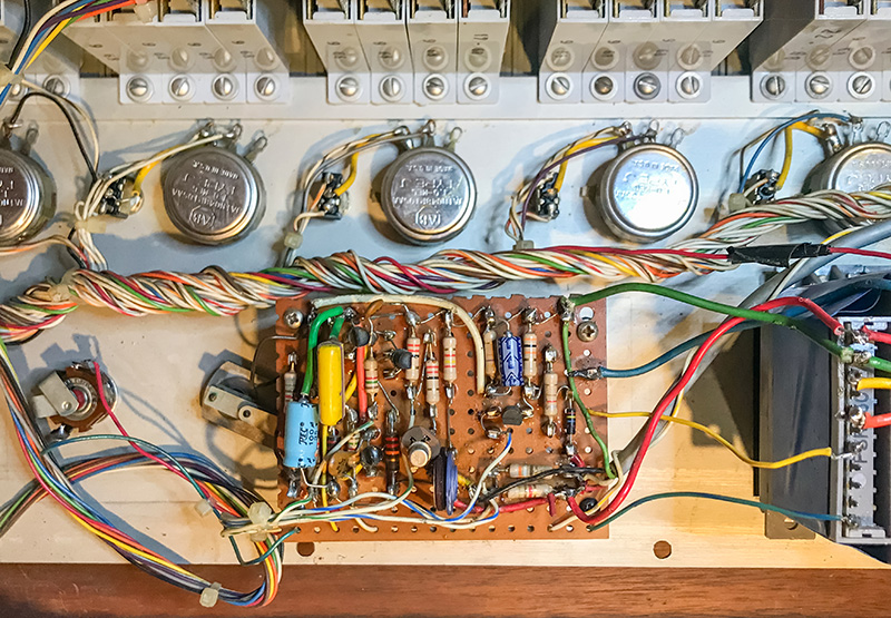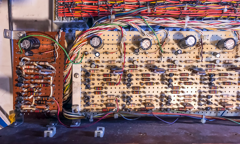 On the far right are what I call the transistor boards. Note there are two boards mounted back to back. The panel has been laid flat.
