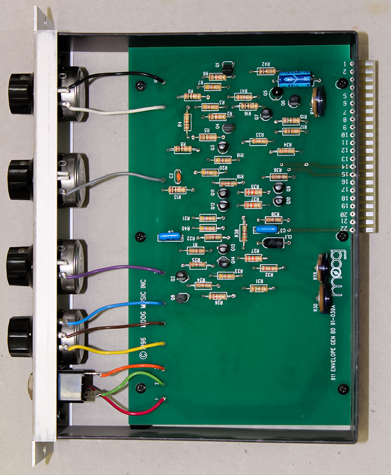 Don Martin acquired the name Moog Music Inc. when the trademark had elapsed. He started a new Moog Music company and made many Moog modules. He also made Minimoog D clones. He did use double sided PCBs with edge fingers on both sides for the modules which improved reliability.