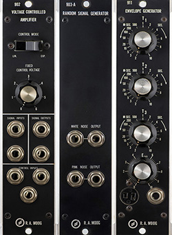 Some of the Moog modules such as the 960 Sequential Controller, 961 Sequencer Interface, and the 962 Sequential Switch use 700 series RTL (resistor-transistor logic) for logic. Of course nowadays RTL stands for register transfer level but the 700 series was the first commercially available low and medium scale integrated logic introduced in the early 1960's and is relatively hard to find. RTL operates on a +3.6V supply so some of the V-Trigger outputs are only 3.6V.