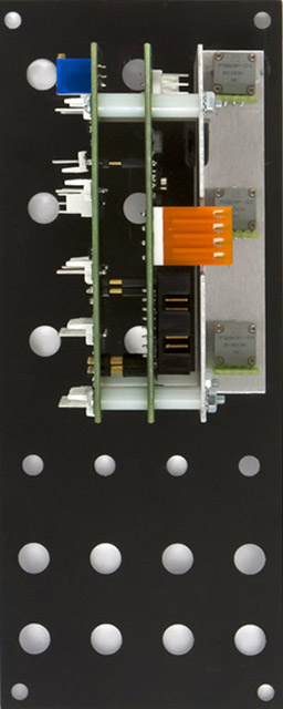 For my 100th module I built a 5U format E340 Cloud Generator as discussed in the E340 panels and the E340/E350 DIY kits forums. The E340 PCB format is identical to the E350 so I used an identical construction technique. The panel is nearly identical with a single toggle switch and E340 legends. I added 3 additional CV attenuators and mounted all controls, switches, and jacks on the front panel. I used single inline headers to sandwich the PCBs together so they can be removed for service or additional modifications. I used MTA connectors for all front panel controls. You can see the construction details on my E350 page or click on any of the thumbnails below.