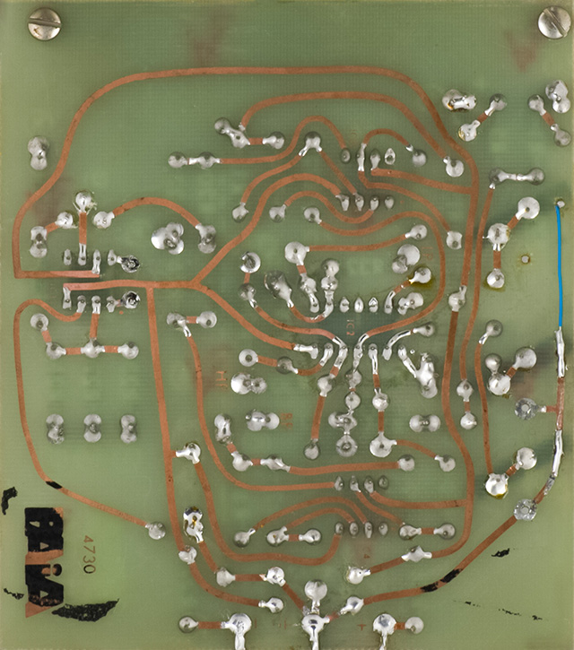 These are the PCB traces. The three trimmers were previously converted to multi-turn and the traces repaired on the right.