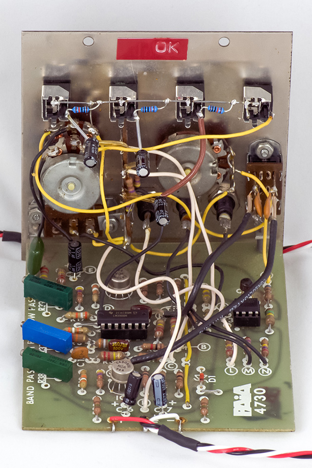 I upgraded the jacks, sockets and the LM3900 and 748 op-amp, and replaced the electrolytic capacitors. I used bi-polar for the output capacitors and added 100K bleed resistors. I upgraded the 748 IC to a TL071 and removed the compensation capacitor. The power cable terminates in a 4 pin MTA connector.