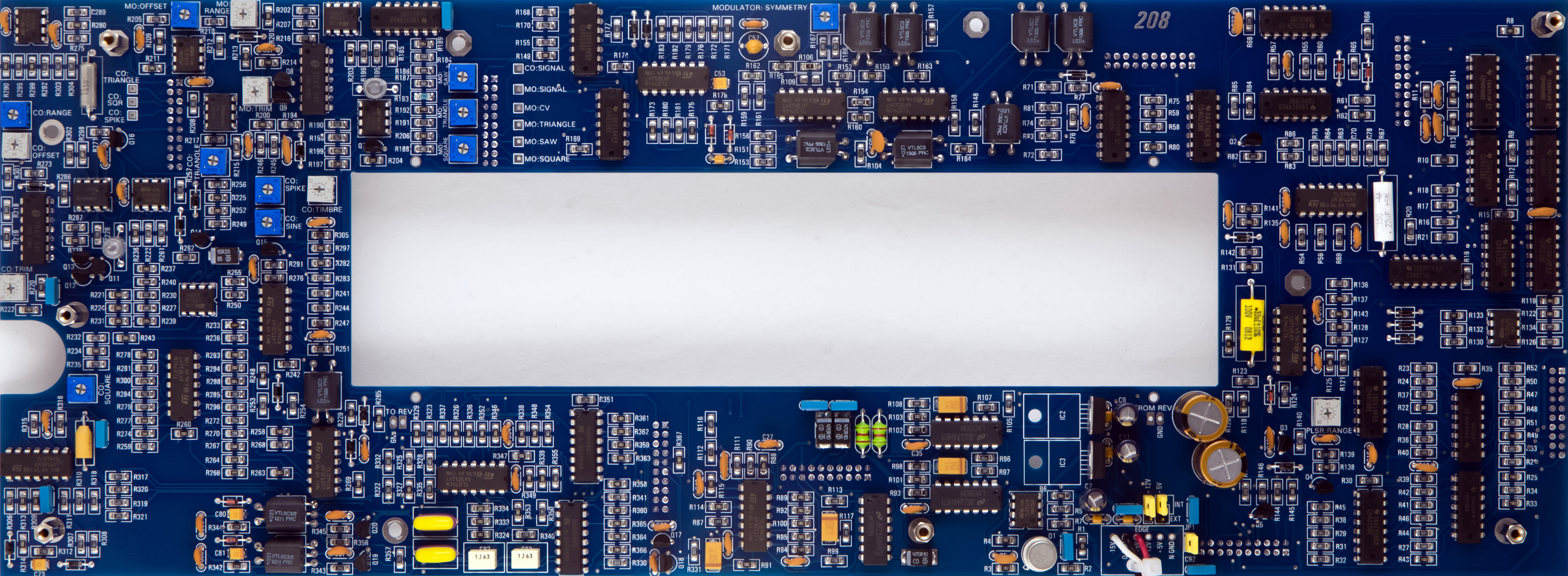 I built this 208 Stored Program Sound Source module for someone else. This is the original two-board set now referred to as V1. They sent me a complete kit of parts and I assembled and tested the module. Many of the components are sourced through Mouser but specialized parts, panel, knobs, and PCBs have specific sourcing requirements.