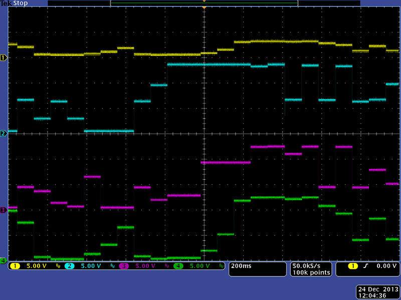 The four random outputs are unique. Output 1 (top is just an attenuated version of output 4 (bottom).