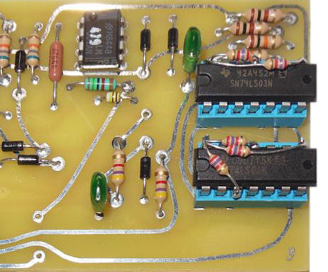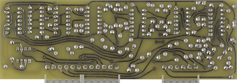 I used sockets for the rare 846 DTL ICs. The tab on the DG200 points to the square pad and pin 7 needs to be cut off to fit the PCB.