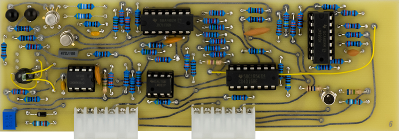 Card 3 is the envelope Generator and has two wires. I have tried to help others through email fix the 13.5V supply that is on this PCB. They tend to run a full volt over at 14.5V. The issue is the Q2 pinout is ECB, not EBC. You have to bend the leads to fit.