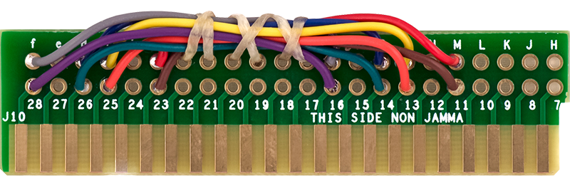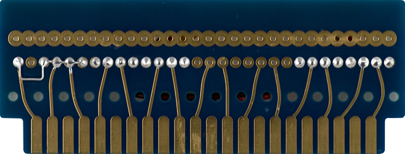 I was asked to make one of my adapter boards to map main and monitor outputs to the front panel auxiliary jacks for a vintage 227. I didn't have access to the original but from the description, pin definitions, and schematics determined how to wire one up. I bought a Jamma Fingerboard Adapter PCB which has two edge connectors. One is missing a pad but the other side can be cut down to fit the 44 pin connector.