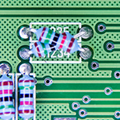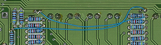 PCB1 contains the controls and related passive components. You can see the 10 mod wires on PCB1 and the crossed resistors.