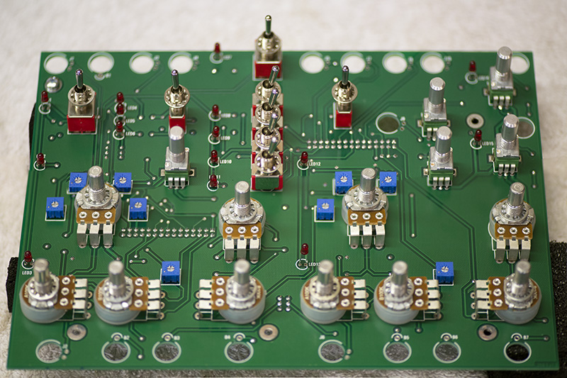 Build time for PCB1 and the panel was 3.75 hours. This is PCB1 ready for the final front panel installation (the image is a composite of two separate photos).