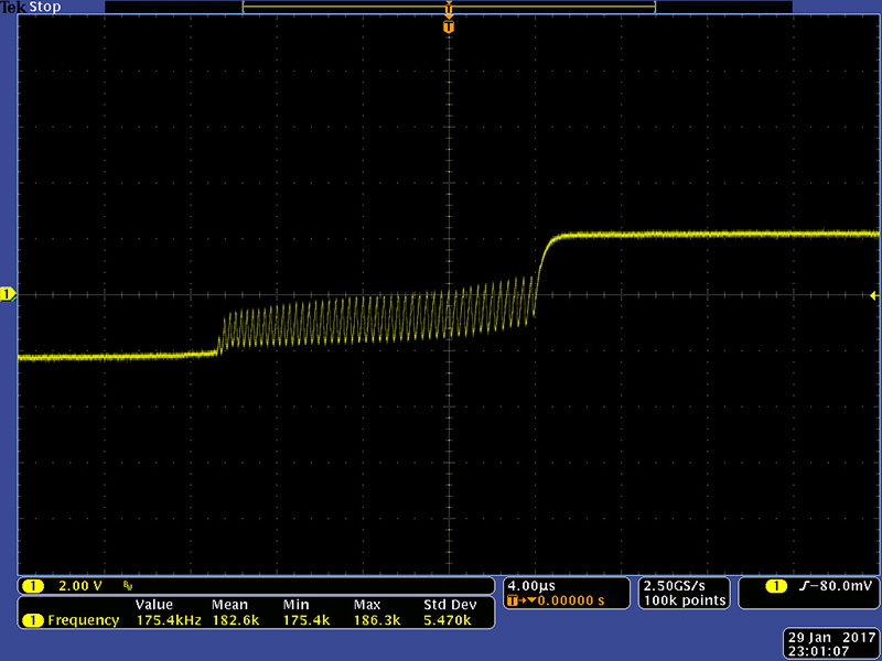 Increasing the sweep speed to look at the rising edge shows the oscillations.