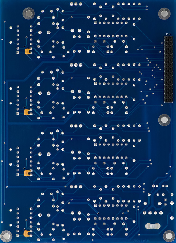 Assembly of PCB2 is straight forward. As with all these modules that interconnect with square pins, I fully seat the pins into the housing, mate the two PCBs together, then solder the pins. The square pin header sits off the board but the pins fully mate.