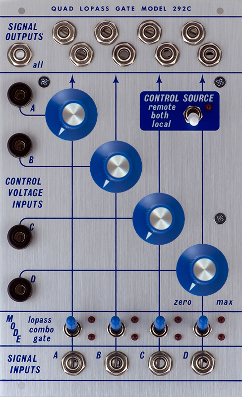 I built a 292C Quad Low Pass Gate V1 module for someone else. They sent me a complete kit of parts and I assembled and tested the module. Many of the components are sourced through Mouser but specialized parts, panel, and knobs have specific sourcing requirements.