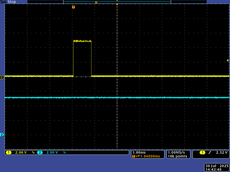 The rising edge of the stock pulse circuit is slow so the trigger is slightly delayed from the gate.