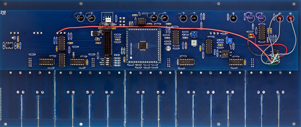 I built this 218r V2 keyboard for a Serge system. I adapted the power supplies to +/-12V only, separated the pulse output into a 5V trigger and a 5V gate, and set the preset control range and pressure range to 5V.