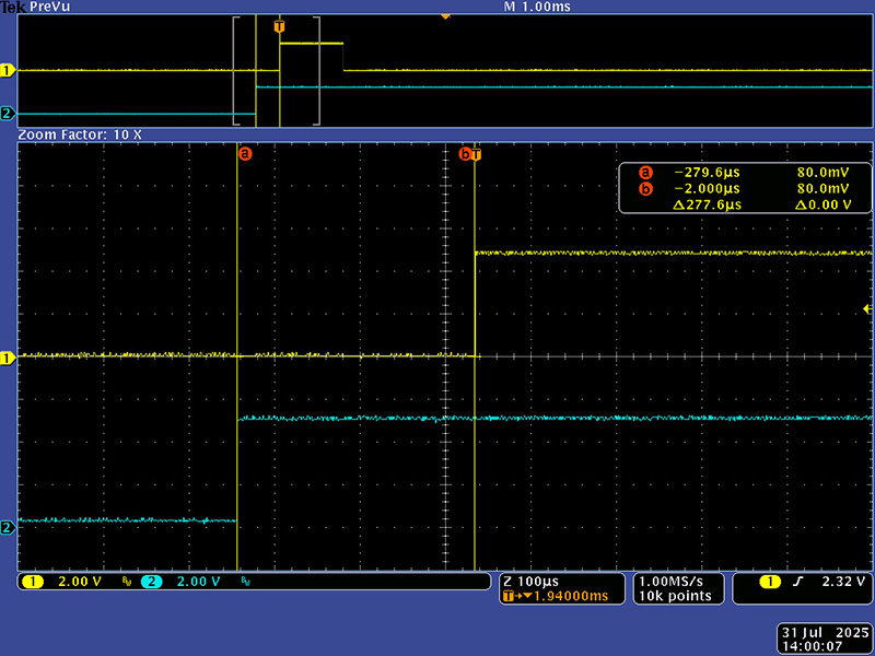The gate to trigger delay is only 277 µS which shouldn't be an issue.