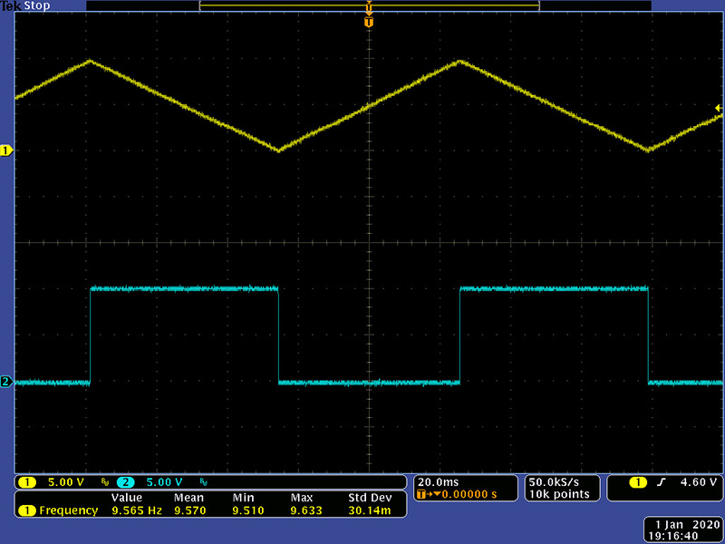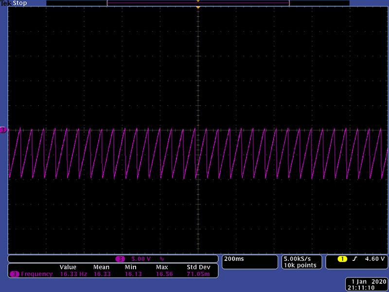 The S&H Ext input can be used as a usable internal clock output with light loading. It is a unipolar 0 to -10V ramp. The minimum frequency is 26 mHz or one cycle every 38.4 seconds