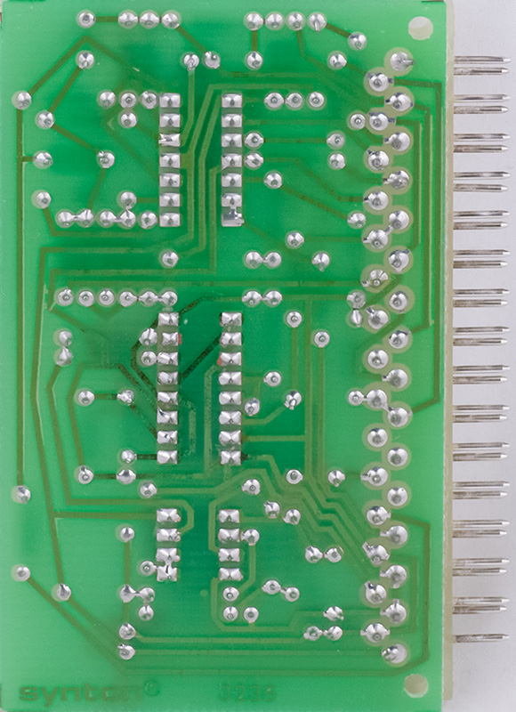 The two LEDs are mounted back to back and soldered between the wiper pad and ground. There is no series limiting resistor so I cut the trace and added a 1K resistor. Not shown on this photo is pin 13 of the center IC is floating. It is the Reset-0 input to the one-shot and should be tied to Vcc.