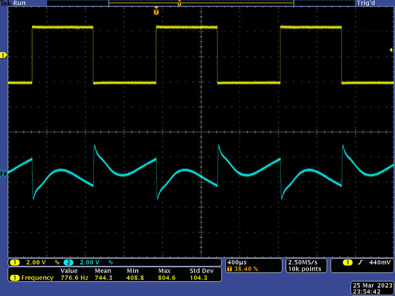 This scope image shows the Comb ↓output with the 777 Hz control set to maximum.