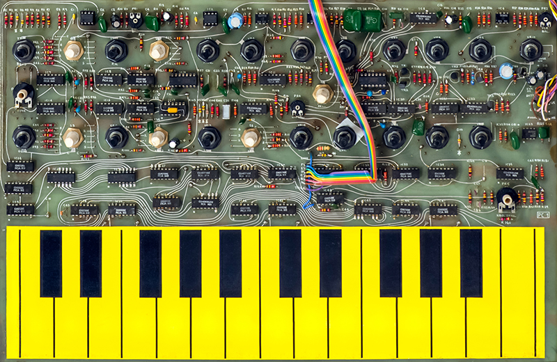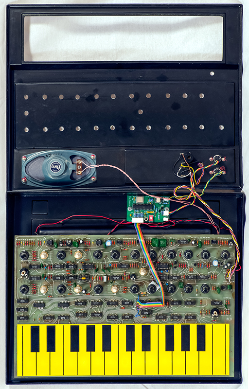 The plastic enclosures of the WASP tend to be broken but this particular one is in great condition. The small PCB is the Elby Designs miniMIDI-WASP interface that I added for the customer which provides MIDI note control over three octaves.
